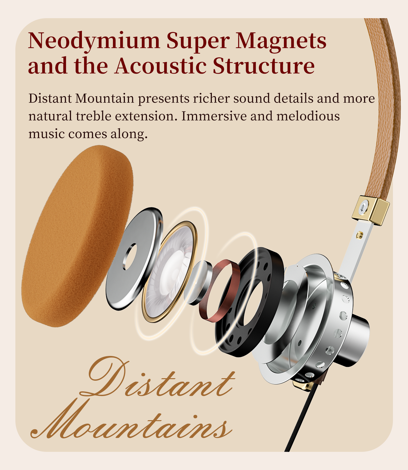 Estos auriculares retro incorporan un innovador diafragma topológico compuesto de 40 mm. Su cúpula rediseñada y el anillo corrugado ofrecen agudos nítidos y transparentes, y graves profundos e impactantes. Gracias a sus superimanes de neodimio y a su estructura acústica diseñada para auriculares pequeños, los Distant Mountain brindan un sonido más rico en detalles y una extensión de agudos más natural. Disfruta de una experiencia musical envolvente y melodiosa.